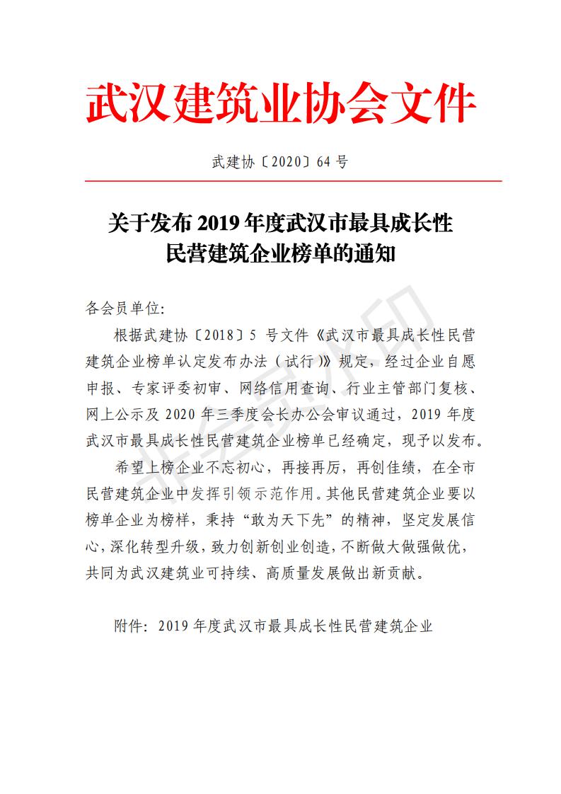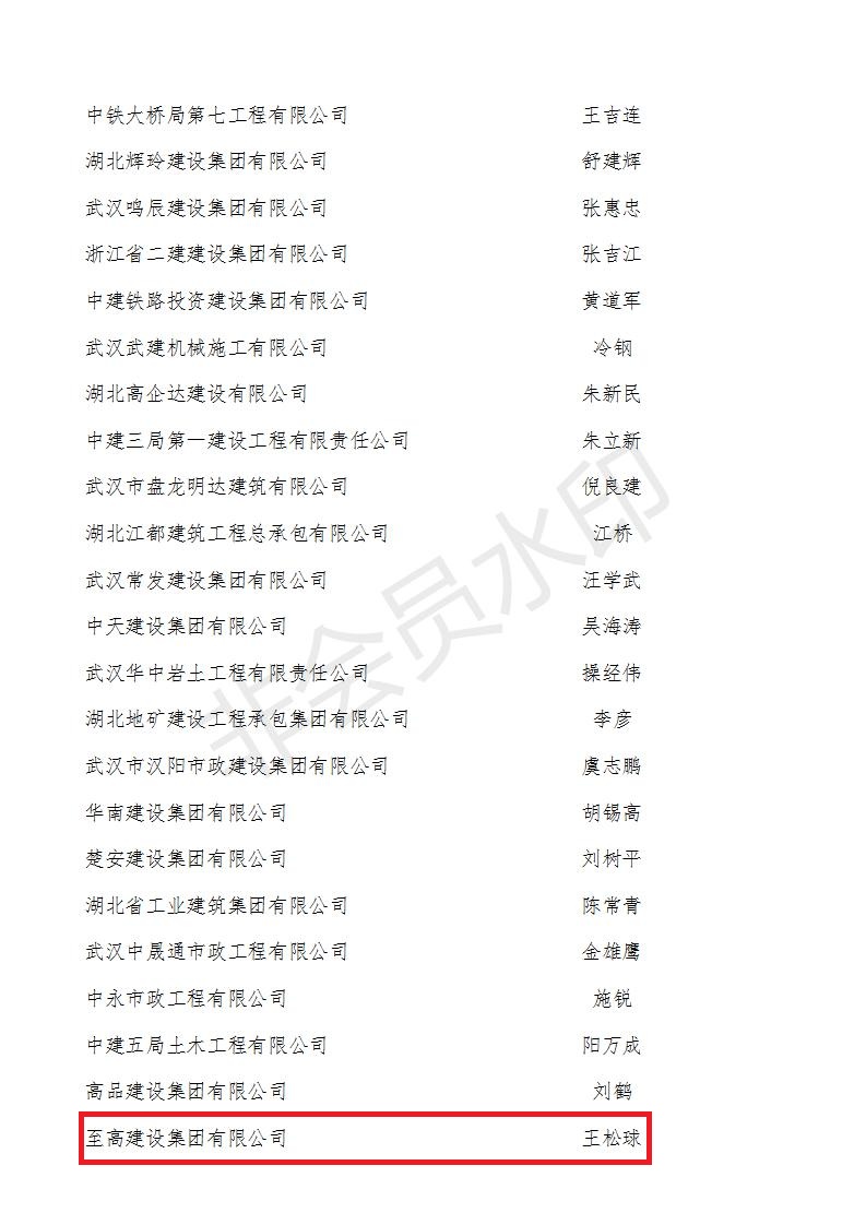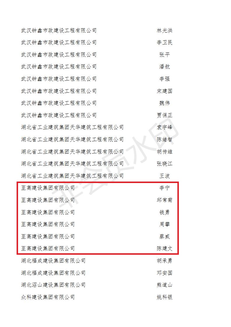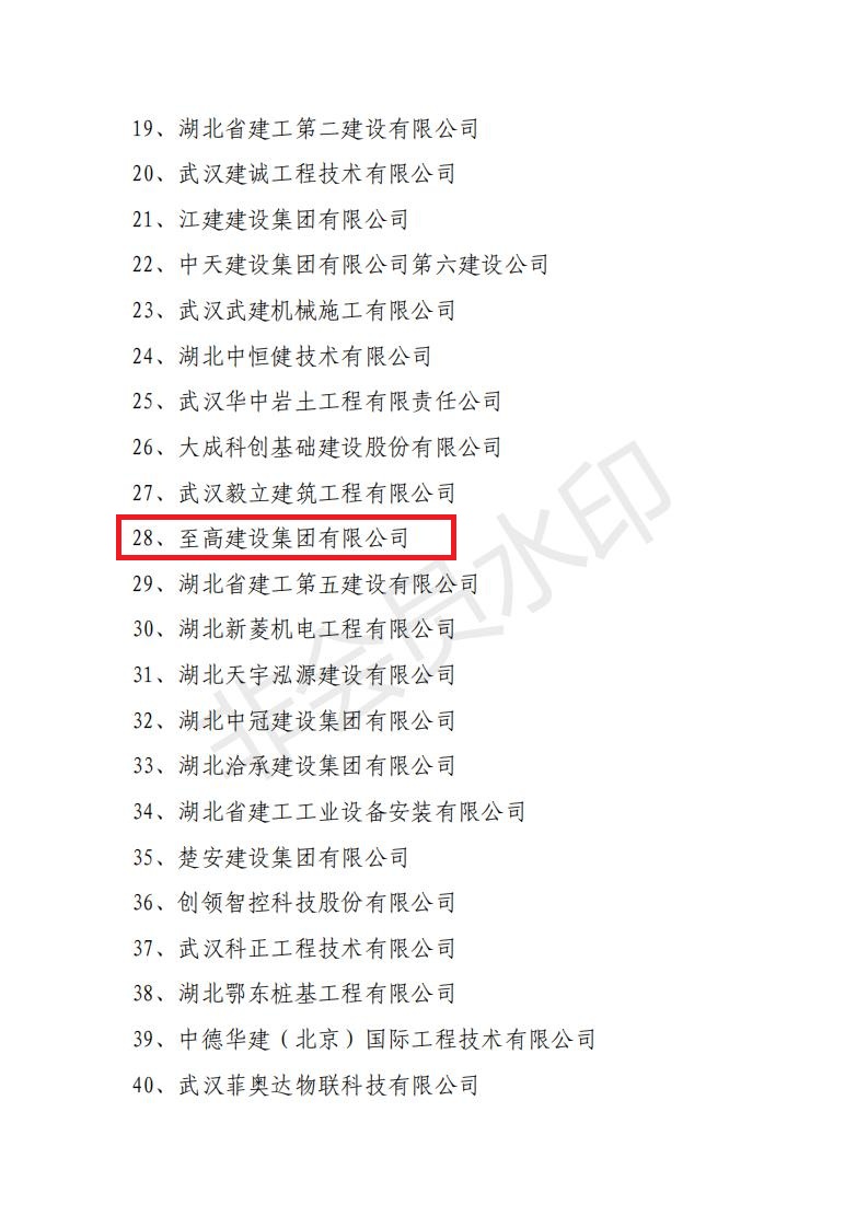2020年10月21日,武漢市建筑業(yè)協(xié)會發(fā)文,至高建設(shè)集團(tuán)喜獲“2018-2019年度武漢地區(qū)建筑業(yè)優(yōu)秀企業(yè)和2019年武漢市最具成長性民營企業(yè),這是繼去年獲評2018年武漢市最具成長性民營企業(yè)后,至高再次獲獎。集團(tuán)公司董事長王松球榮獲優(yōu)秀企業(yè)家獎,集團(tuán)總工程師王年球榮獲優(yōu)秀總工程師獎,集團(tuán)公司六位職工李寧、邱常菊、錢勇、周攀、蔡威、陳建文榮獲優(yōu)秀項(xiàng)目經(jīng)理獎。